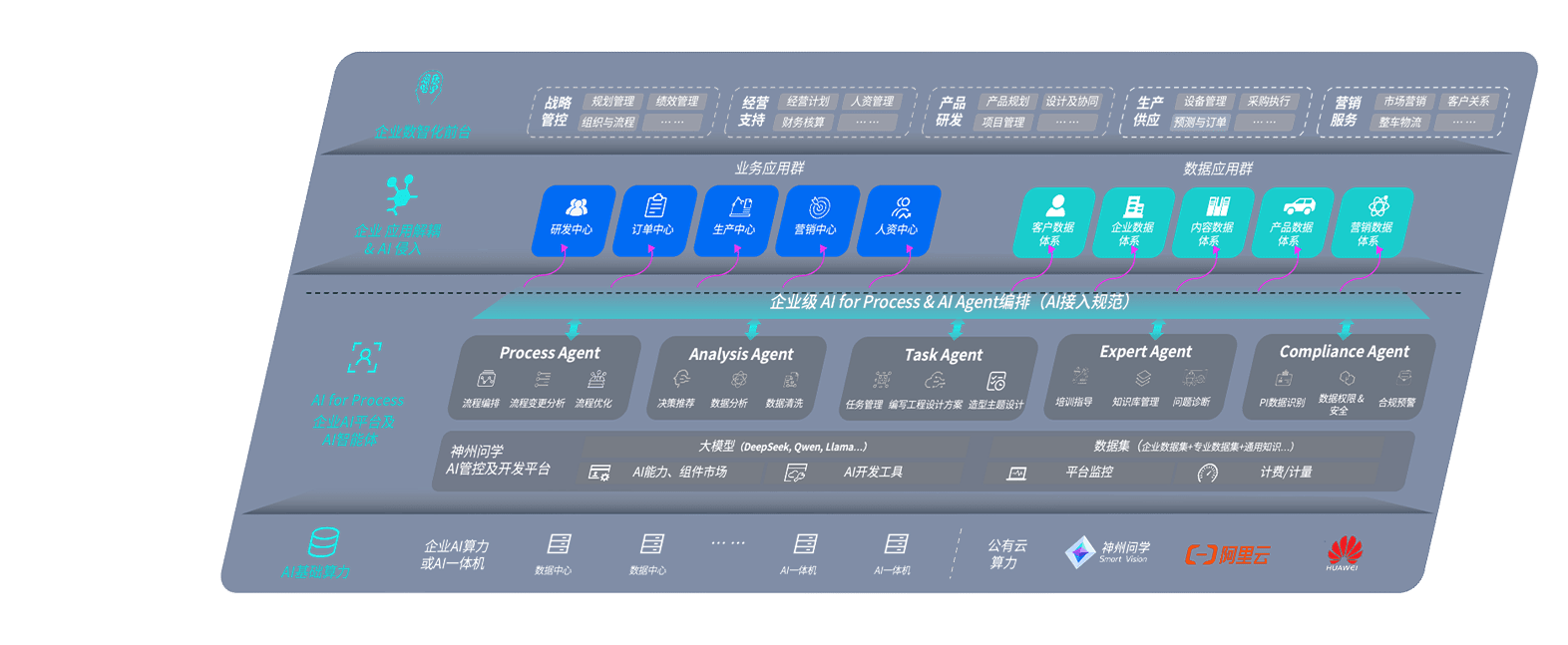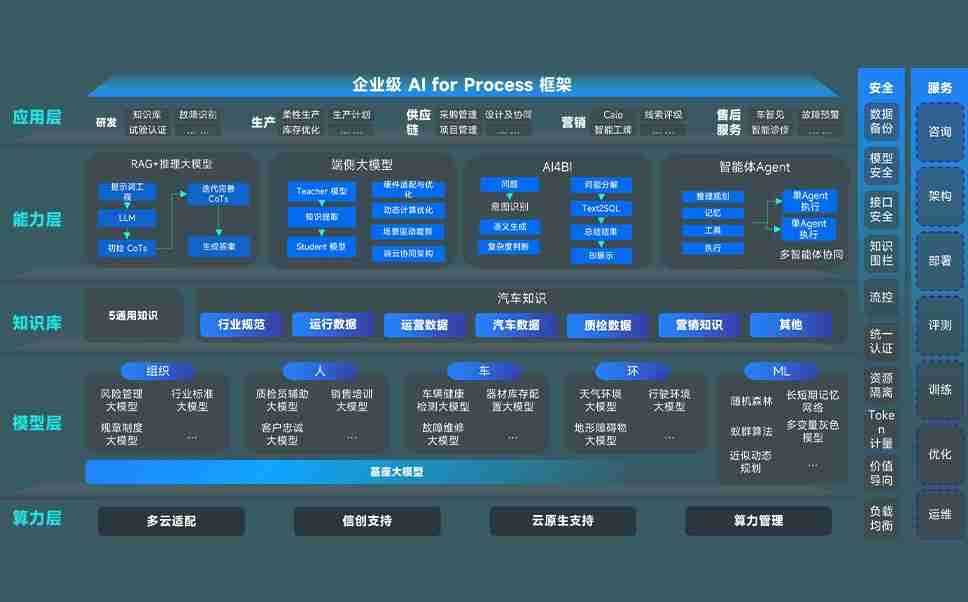 端到端的一站式AI工作空间深度融合了从企业战略规划到日常经营的全流程业务板块,,,,定向解决车企内部领域多、、、部门多、、链条长、、场景碎片化等难题,,,支持车企快速构建以AI为核心的生产力写作体系,,实现任务执行与AI能力的无缝集成与交互